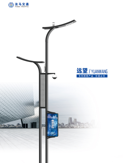 4、專業設計人員、豐富的設計經驗。法馬智慧多功能桿風格多樣,造型美觀大氣,目前擁有雙子星款、滑翔款、玉堂春款、墨樓款、重邁款、諜影款、桃花源款等多種款式,且擁有外觀專利。